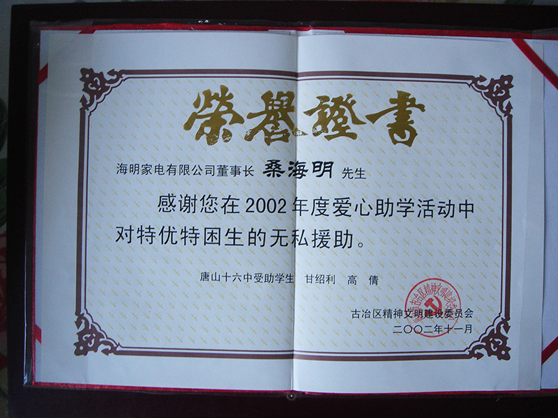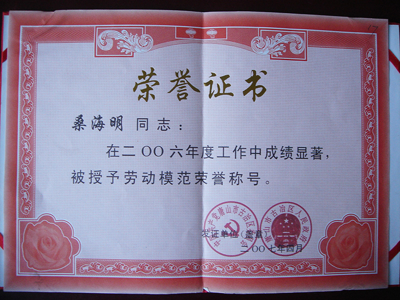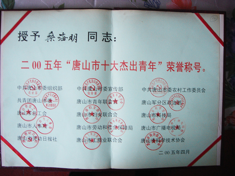 集团董事长桑海明自1988年开始创业至今已有三十余年的从业历程,曾历任唐山市政协委员,唐山市青联委员,唐山市残疾人企业家协会副会长、古冶区人大代表、古冶区残联副主席、古冶商会副会长、古冶区私营企业协会副会长等职务,并多次被授予如下殊荣: