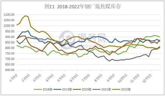 从库存方面看,2022年,全年焦化厂与钢厂维持低库存,库存水平为近五年最低,虽然最近一个月,下游钢厂和焦化厂库存在冬季补库效应下有所回升,但整体仍处于低位,港口库存无明显变化。受制于终端消费疲软,预计焦钢企业明年大概率仍保持低库存水平运行,短期补库或将为焦煤带来阶段性反弹,但长期支撑较弱。