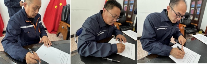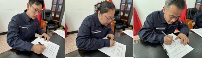 会议现场,与会的北方货运公司总经理石坚、优阳选煤厂长王朝林、各单位主管安全副总经理、安全环保检查员,依次在《安全环保攻坚行动承诺书》上郑重签字。承诺书满是沉甸甸的责任和斩钉截铁的决心:“全体安全环保管理人员,践行海明人精神,彰显攻坚之姿;聚焦攻坚要点,筑牢风险防控之堤;主动协同作战,凝聚联动攻坚合力。”