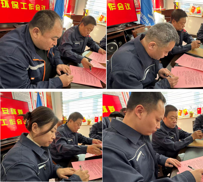 安全、环保工作目标责任状签订后,储运事业部分管安全环保工作副总经理甘印同、北方货运公司安全科长孙志君、集团公司办公室安全员曹一杰、星凡汇文化艺术发展公司安全员刘乾宇先后表态发言。四位同志结合本单位实际,明确了落实安全环保责任的具体思路和措施,表达了坚决完成年度目标、为集团高质量发展保驾护航的坚定决心和信心。