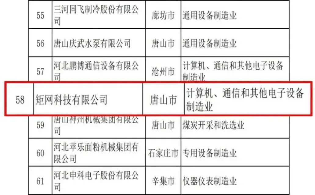 为加强河北省民营企业发展信心,加速培育新质生产力,促进民间投资新动能,不断做强做优做大数字经济,实现高质量发展。8月29日,河北省工商联公布了2024河北省民营企业100强企业名单。矩网科技有限公司(简称“矩网科技”)凭借卓越的创新能力、瞩目的专利成果、革命性创新产品,荣耀登榜2024河北省民营企业发明专利100强。
