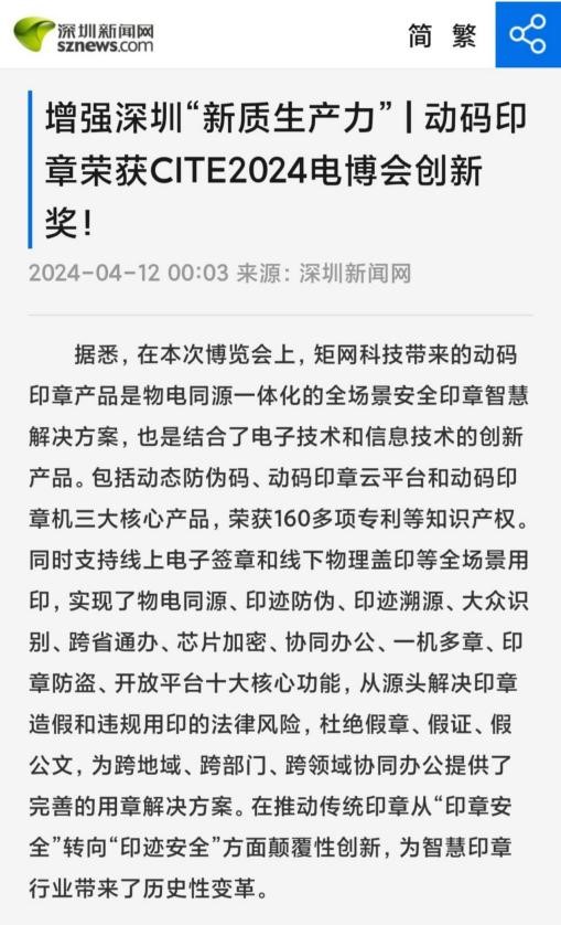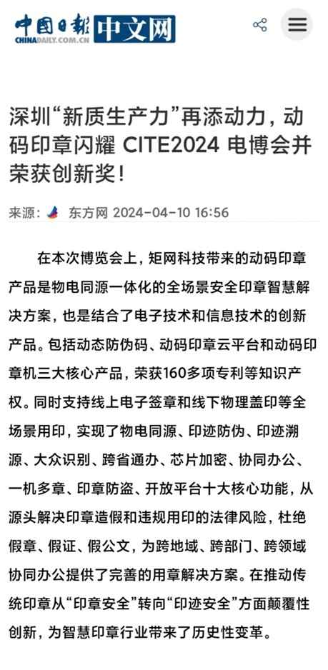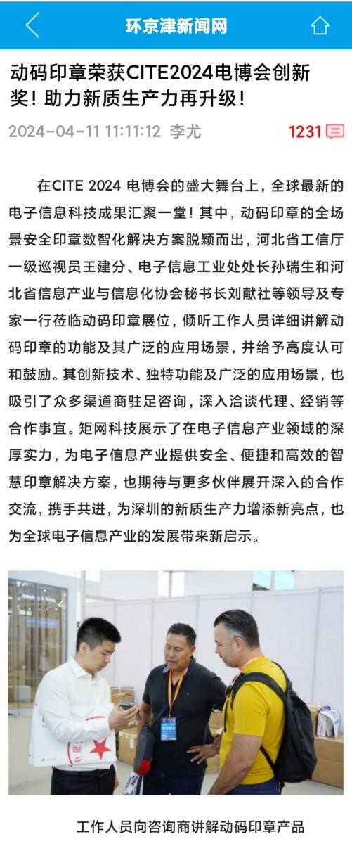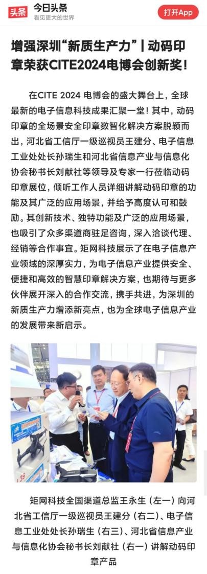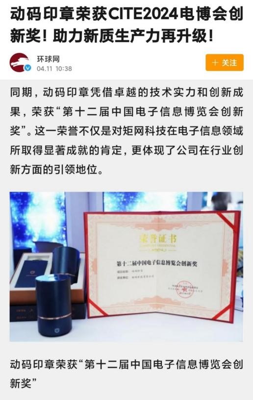 CITE 2024电博会焦点:动码印章荣获创新奖,增强深圳新质生产力!